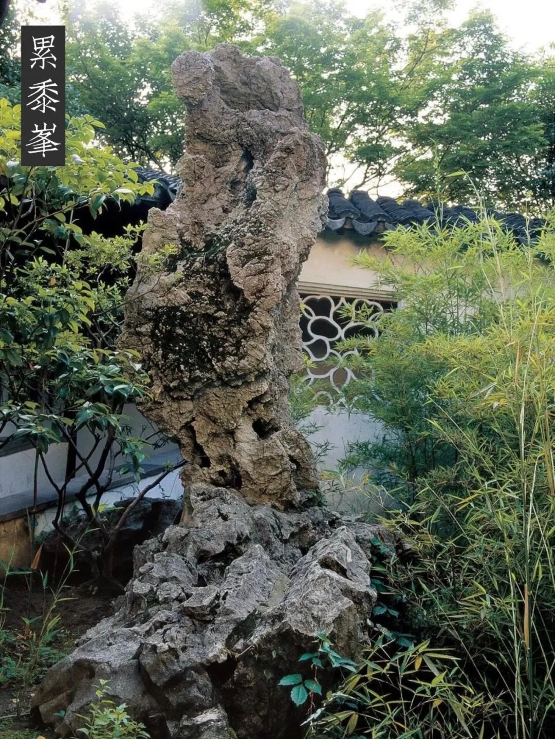 累黍峰 在“五峰仙馆”北庭园东首、“还读我书斋”西天井小院中,当窗而立,高约3米。石上生有累累黄色结晶颗粒,上部有一个天然孔穴,形如初月。石旁伴有翠竹数枝。从“还读我书斋”内透过空窗看去,好似一幅绝妙的《竹石图》。刘恕在十二峰图上题诗曰:“千重万叠累成堆,劈斧披麻两费猜;不是梅花工秃笔,何人点得此苔。”潘奕隽诗口:“累累直疑从黍谷,移来或忍是愚公;还须更乞麻姑手撒与茅檐聊御穷。”“累黍”之名,影喻了古人所谓“书中自有千钟粟”的典故。