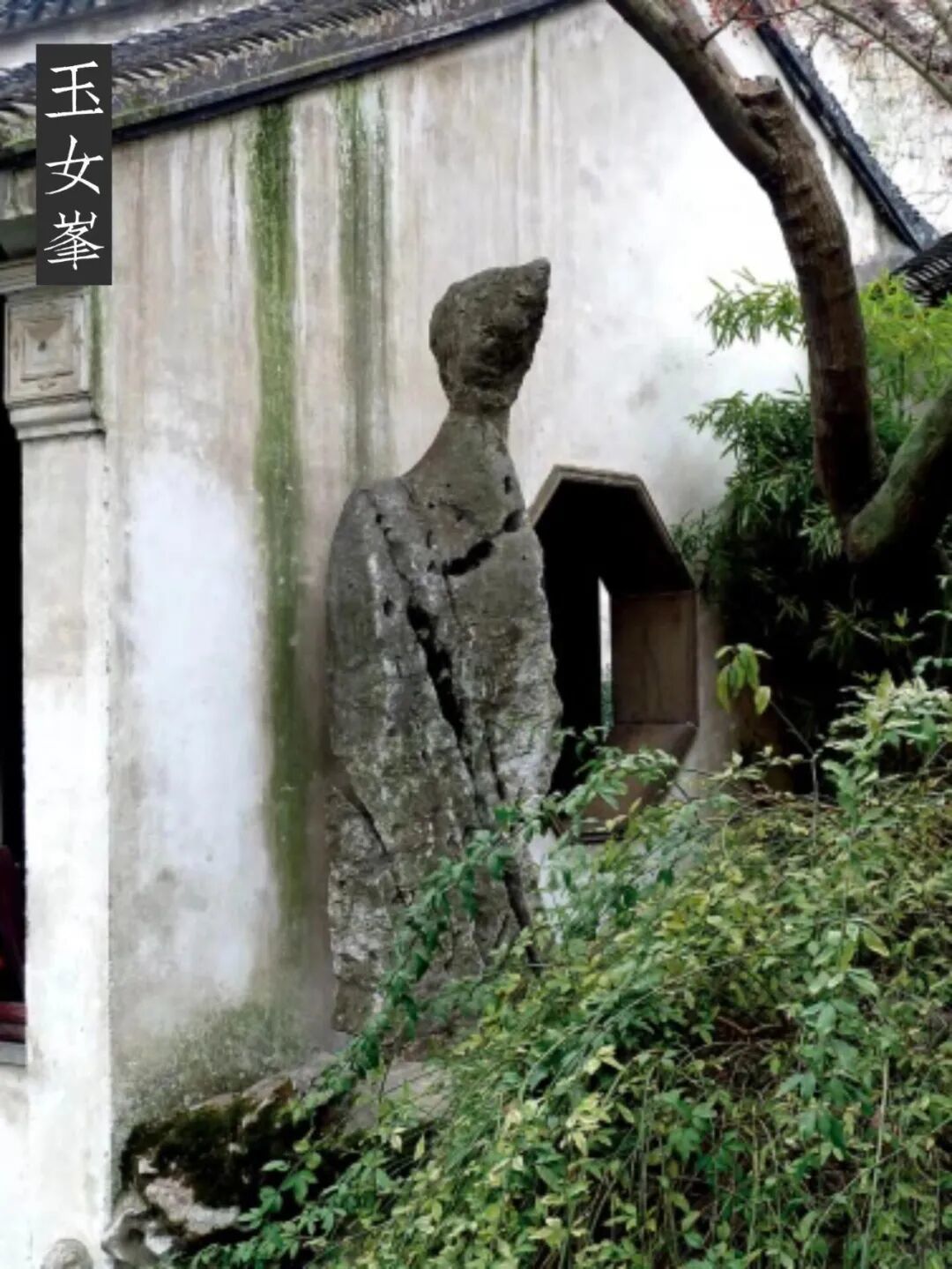 玉女峰 在绿荫轩西侧墙边、百年青枫树下(此树已于1992年病死,1994年春补植),高约2.3米。石峰上端早年曾经断落,20世纪80年代在疏浚池中淤泥时复得,现用粘胶连接。因石峰形如济颠,俗呼济仙石。潘奕隽诗曰:“凌波仿佛珮声迟,雾鬓风鬓世外姿;拟借湖亭来避暑,拈毫先赋影娥池。”今从池中小岛东面曲桥南望,只见玉女雾鬓风鬟,素裳曳地,风姿绰约立于轩边池畔,凝视着满春色,犹如一幅“影娥池畔绿荫浓,玉女春望倚斜阳”的图画。